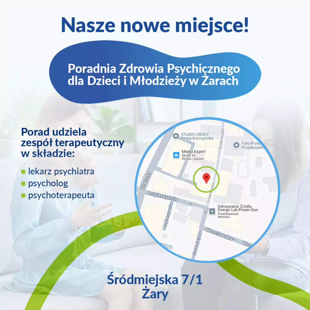 Z przyjemnością informujemy, że Ośrodek Relacja przyjmuje dzieci i młodzież w nowopowstałej Poradni Zdrowia Psychicznego dla Dzieci i Młodzieży w Żarach, przy ul. Śródmiejskiej 7/1.